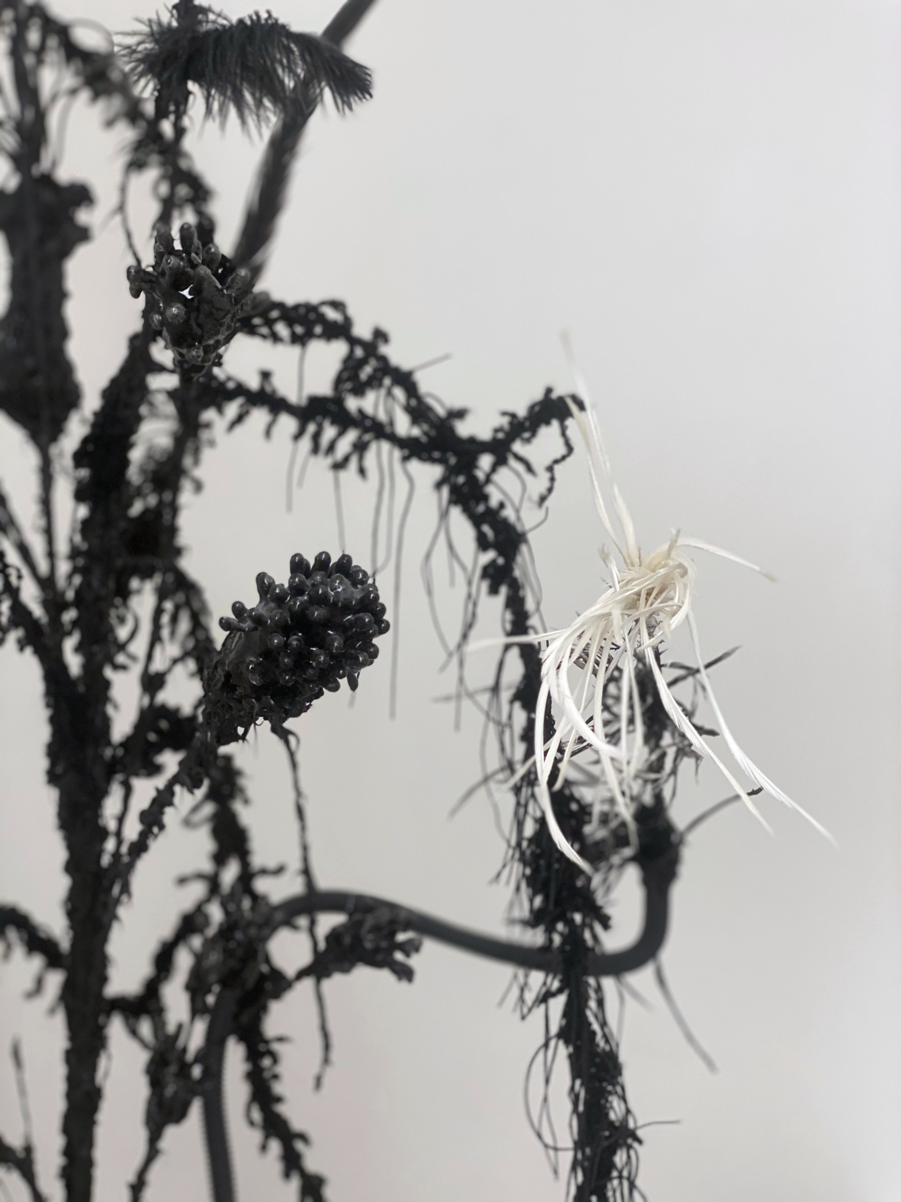 Yarn, silicone, iron, urethan resin, feather, fly swatter, scissor, shower loofah and other mixed media, Dimensions variable(height approx. 300cm)
