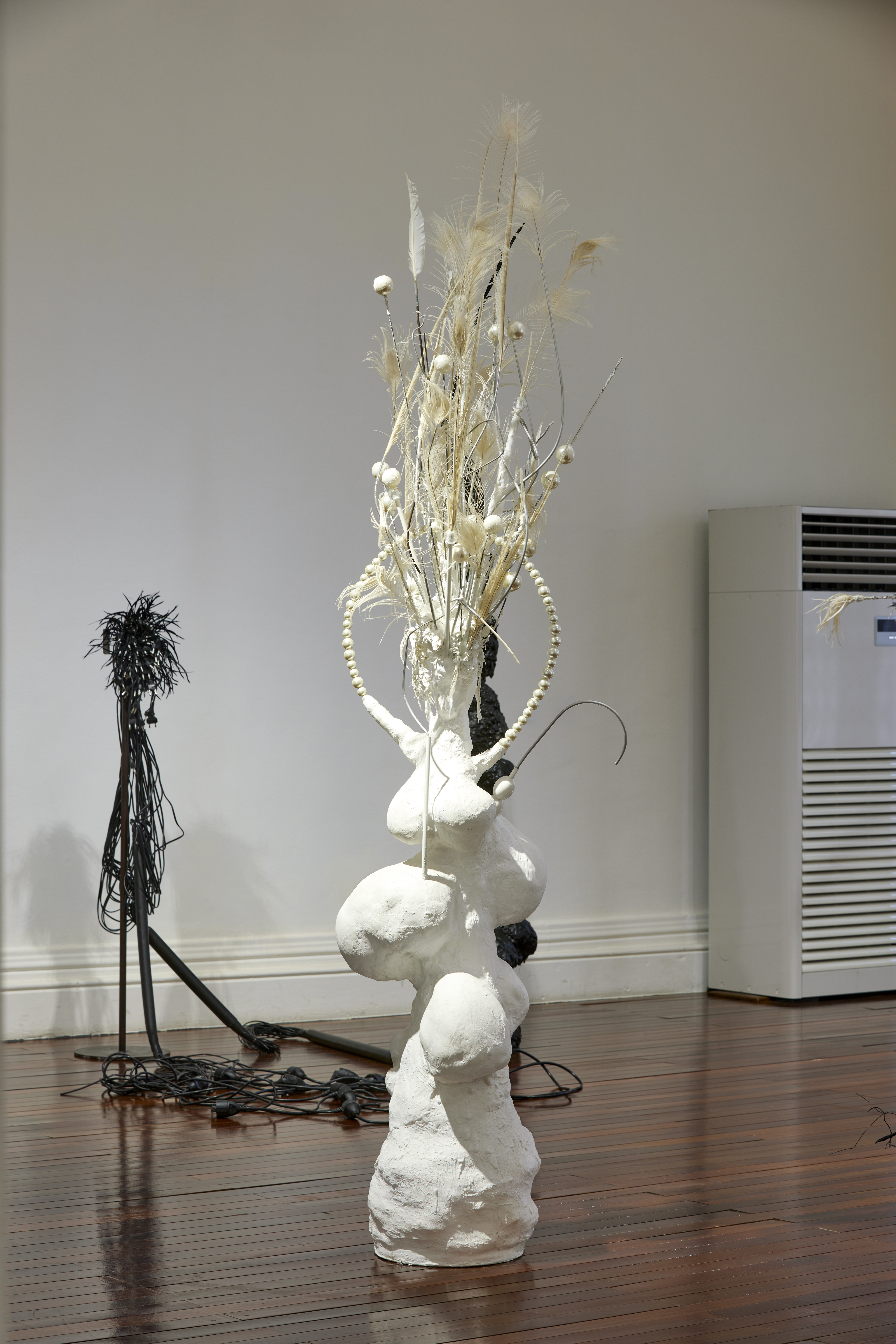 Plaster, resin, aluminum, feather, acrylic ball, imitation pearl, baked wire and other mixed media, 250×63×80cm