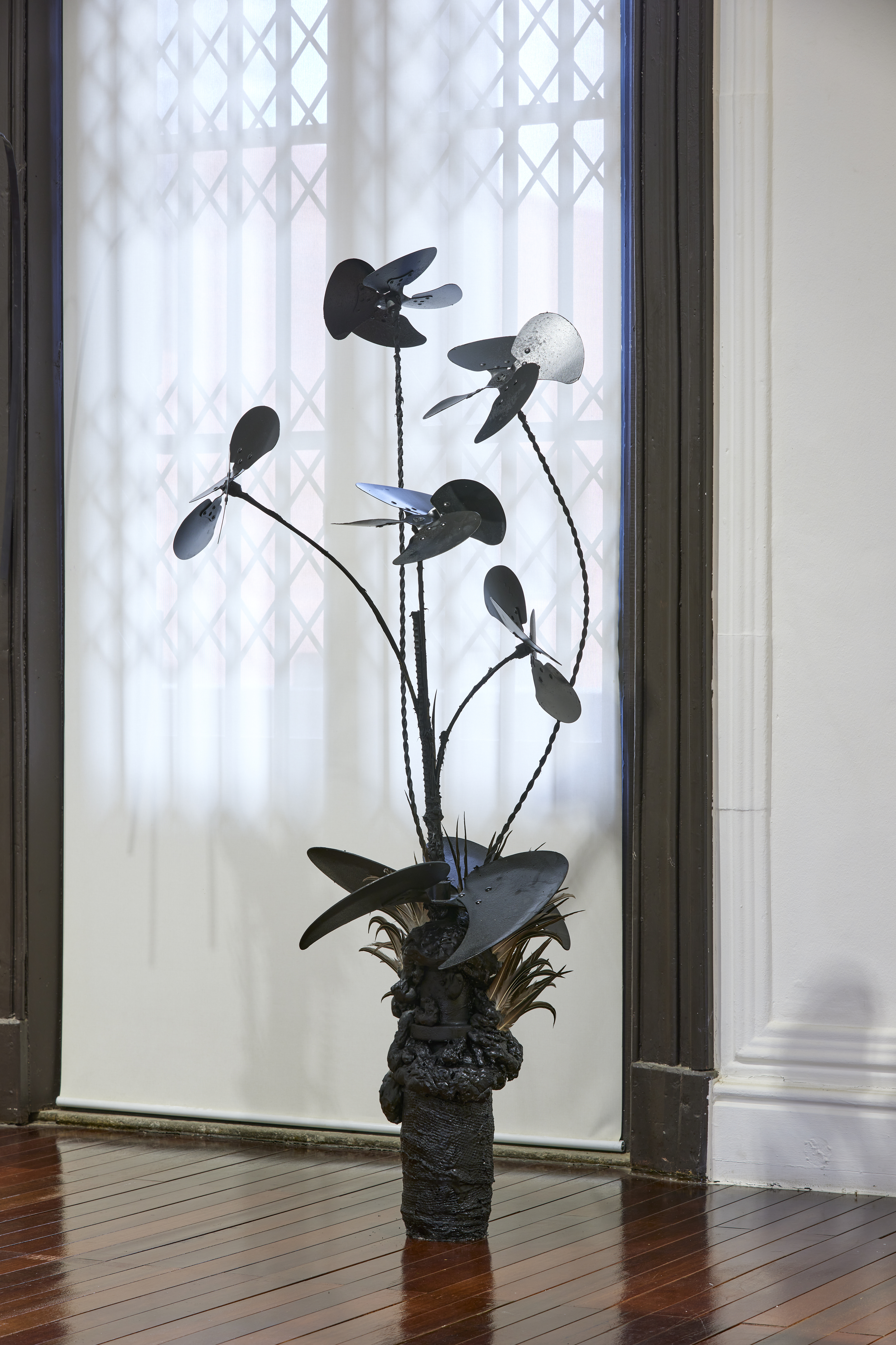 Iron propeller, baked wire, resin, feather, silicone and mixed media, 가변 크기 Dimensions variable(height approx. 170cm)